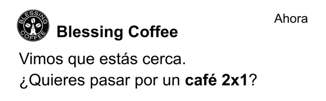 Avísale a tus clientes, en cualquier parte del mundo, o cuando pasen en un radio de +100 mts cercanos a tu sucursal sobre tus nuevos productos, promociones o eventos sin depender de SMS, WhatsApp o email.